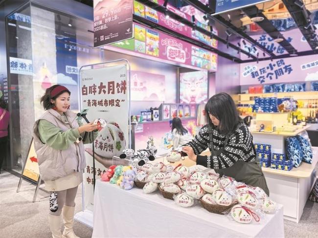 “這款產(chǎn)品的設(shè)計(jì)靈感就來(lái)源于我們青海的傳統(tǒng)月餅。”記者看到,這款青海城市限定的“白胖大月餅”不僅在外觀上十分生動(dòng)地還原了傳統(tǒng)月餅,還醒目地寫上了“青海月餅”四個(gè)字,很有地方特色。通過(guò)線上、線下多種渠道,短短幾天已經(jīng)銷售了400多個(gè)。