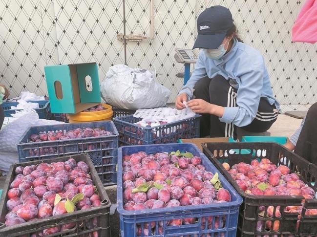 他們?nèi)齼蓛蓢谝黄穑b不久前采摘下來的西梅。一位男子熟練地將印著“尖扎西梅”的一摞摞扁平紙盒,折成一個(gè)個(gè)方方正正的小盒;幾位婦女手腳麻利,把西梅套進(jìn)海綿網(wǎng)、整齊碼進(jìn)盒中,不多時(shí),這些帶著鄉(xiāng)土氣息的甜果便發(fā)往了省內(nèi)外。
