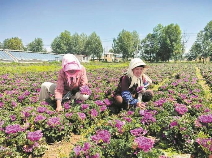 互助冷涼蔬菜種植基地,農(nóng)戶采摘羽衣甘藍(lán)。王菲菲 攝