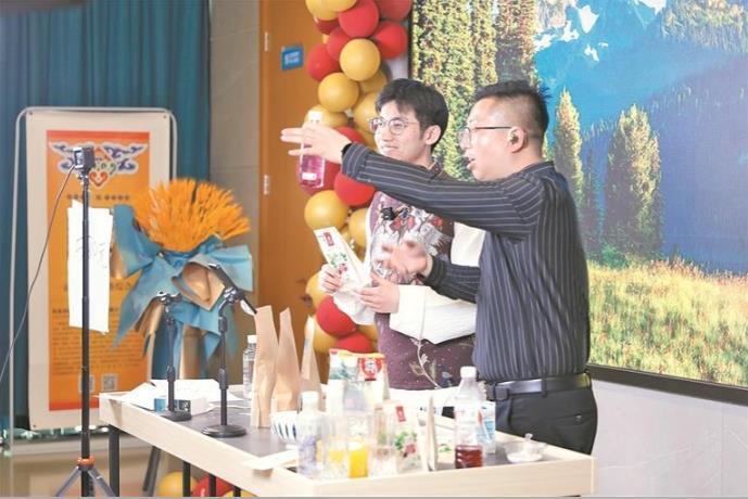 青海農(nóng)林牧商品交易中心現(xiàn)場(chǎng)直播帶貨助力“青貨出青”。交易中心供圖