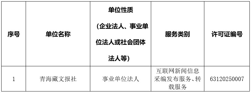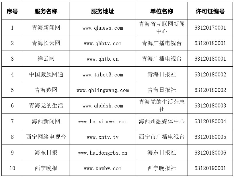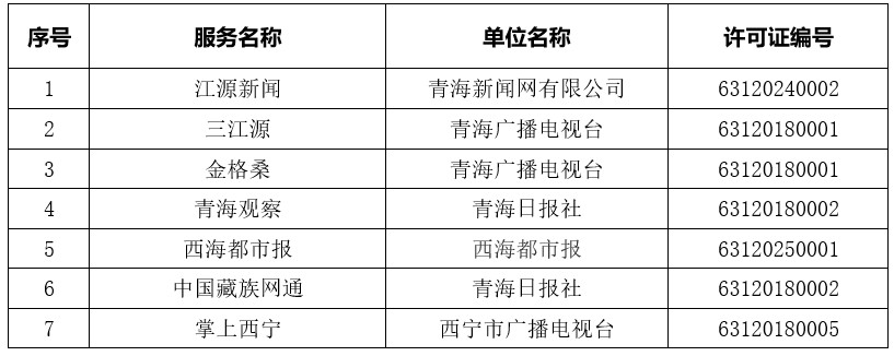 青海省互聯(lián)網(wǎng)新聞信息服務(wù)單位許可信息