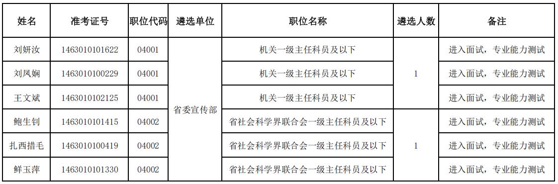 省委宣傳部2025年遴選公務(wù)員面試人員名單