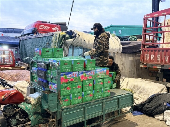 走進(jìn)蔬菜板車區(qū),隴椒、蒜薹、西紅柿、蘿卜等蔬菜成箱堆成一座座小山,翠綠的油麥菜整齊擺放在泡沫箱里,飽滿的甘藍(lán)裹著一層晶瑩薄霜,來自全國各地的蔬菜在這里匯聚流轉(zhuǎn)。“我們凌晨3點多就開始進(jìn)場了,這兩車壽光產(chǎn)的隴椒一卸完就被訂走了大半。”來自山東的菜商劉光永一邊為蔬菜稱重,一邊笑著告訴記者,他家銷售著十幾種蔬菜,就拿隴椒來說,儲備量足有6000斤,每斤6.7元,價格也很穩(wěn)定。