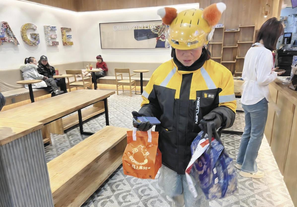 雖已是初春,室外溫度卻還在零攝氏度以下,一大早,騎手岳甜甜就穿戴整齊、套上護(hù)膝,像往常一樣穿行在熟悉的街巷。取餐、核對(duì)、出發(fā)……她重復(fù)著這些動(dòng)作,在這個(gè)特別的日子里,依舊將一份份餐食和年貨準(zhǔn)時(shí)送達(dá)。