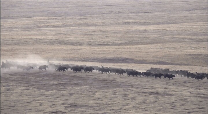 青海曲麻萊縣:管護(hù)員偶遇170余頭野牦牛奔騰