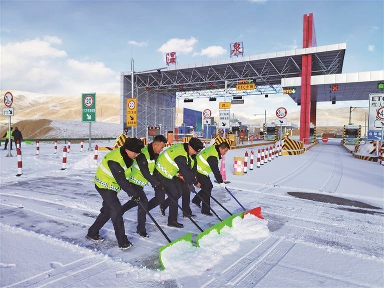 青海高速工作人員除雪保通。受訪單位供圖