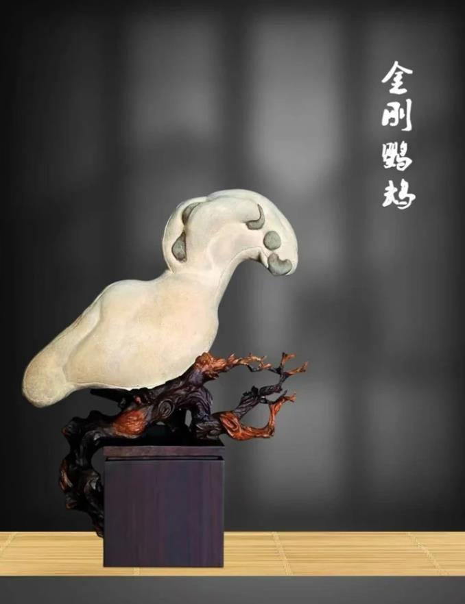 在李強(qiáng)看來,卡通石的美不僅在于天然形態(tài),更在于量身定制的“配套故事”。在他的奇石展廳里,每一塊卡通石都配有精心設(shè)計(jì)的專屬底座:形似鸚鵡的配上樹枝底座,瞬間靈動(dòng)鮮活;人臉形狀的搭配身軀底座,如人物雕像;那塊被取名“力量”的拳頭形石頭,配上胳膊造型底座,盡顯雄渾氣勢(shì)。“配座不是多余的裝飾,而是讓石頭的故事感更足,把天然的美完整展現(xiàn)出來。”他還為每塊卡通石都賦予專屬名字,讓自然之美與文化內(nèi)涵相融。