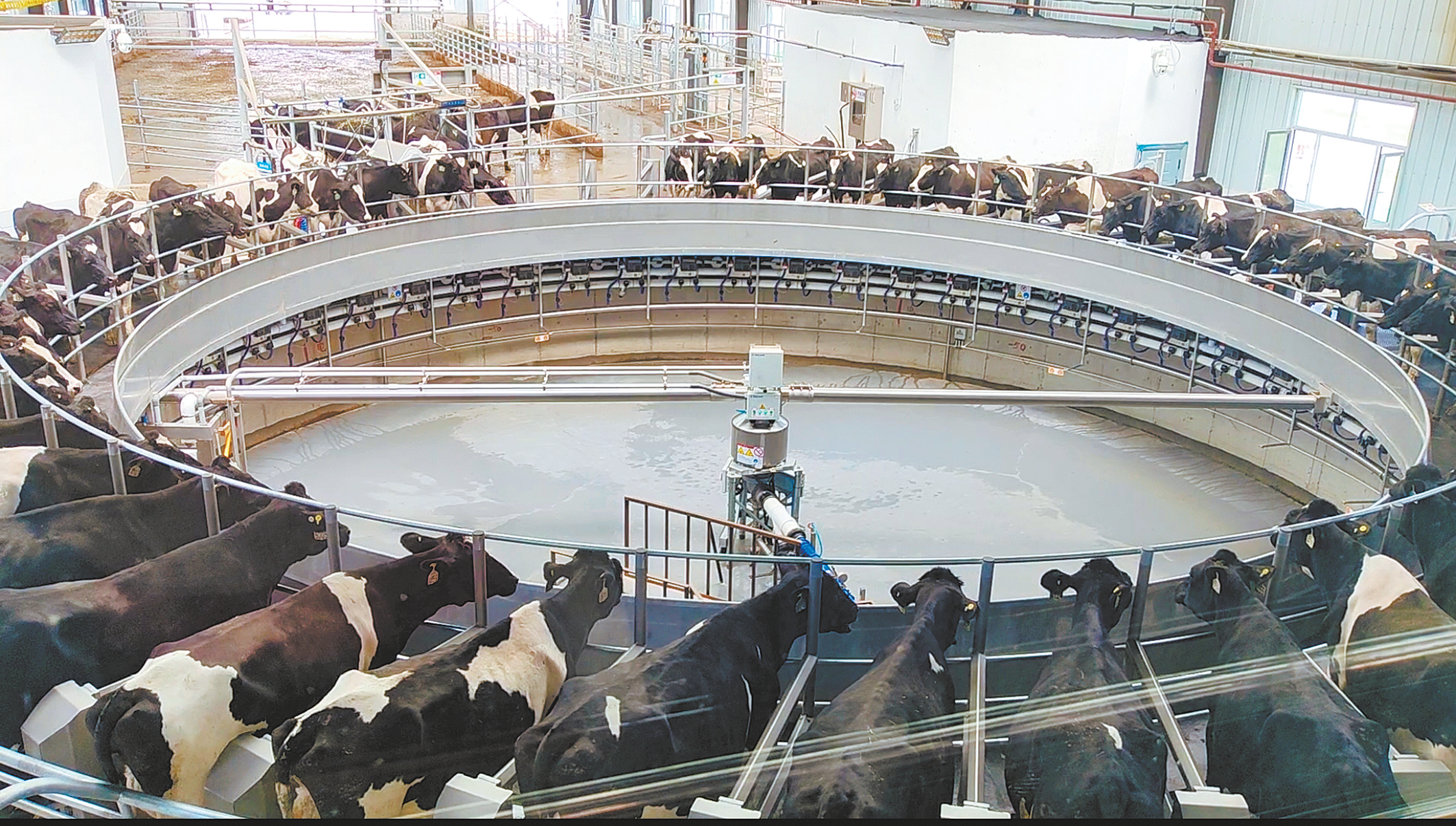 西堡生態(tài)奶牛養(yǎng)殖場擠奶轉(zhuǎn)盤。賈泓 攝