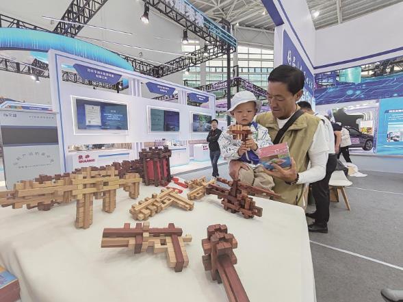 當(dāng)七千年前的榫卯技藝穿越時空,與現(xiàn)代教育理念相遇,巧林榫卯智慧魔塊應(yīng)運而生。山東展館中,巧林新魯班(山東)玩具加工有限公司工作人員李仁杰現(xiàn)場演示著傳統(tǒng)榫卯技藝。幾塊設(shè)計精巧的木構(gòu)件通過榫卯結(jié)構(gòu)相互咬合,無需一枚釘子或一滴膠水,就能變換各種立體造型。精妙的技藝吸引孩子們好奇地嘗試。