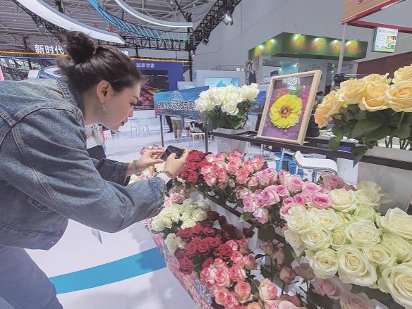 走進(jìn)甘肅展館,臨夏億農(nóng)農(nóng)牧投資有限公司的展臺被裝扮成芬芳的海洋,上百朵不同顏色的水培玫瑰競相綻放。企業(yè)技術(shù)人員張啟鈞自豪地介紹:“我們帶來了8種水培玫瑰現(xiàn)場展示。我們在西寧也設(shè)有前置倉,培育的鮮花會運輸至倉庫,再送往西寧各花卉市場。”除了嬌艷欲滴的鮮切花,展臺上還陳列著以這些玫瑰為原料開發(fā)的系列延伸產(chǎn)品,如玫瑰精油、花冠茶和鮮花餅等,展示著現(xiàn)代農(nóng)業(yè)科技與傳統(tǒng)花卉種植的完美結(jié)合。