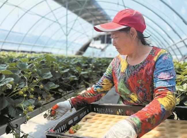 “我們這里是冷涼地區(qū),非常適合種夏季草莓。”基地負(fù)責(zé)人劉痕解釋,“晝夜溫差大利于糖分積累,光照充足能促進(jìn)生長(zhǎng)。”這一項(xiàng)目不僅填補(bǔ)了青海夏季草莓市場(chǎng)的空白,還打破草莓生產(chǎn)的季節(jié)限制,實(shí)現(xiàn)全年供應(yīng);在推動(dòng)產(chǎn)業(yè)升級(jí)的同時(shí),有效帶動(dòng)就業(yè),促進(jìn)周邊村集體年增收8萬(wàn)元。