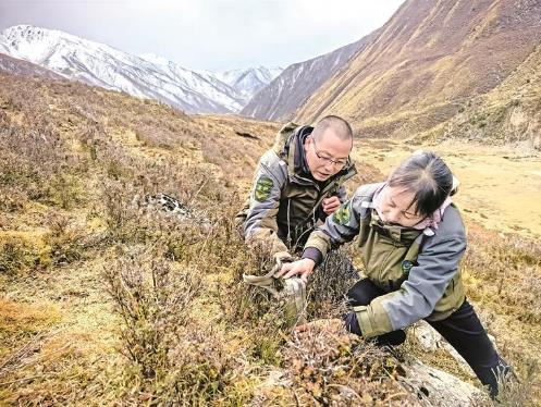 山路崎嶇,我走得氣喘吁吁,生態(tài)管護(hù)員們卻步履穩(wěn)健。他們對(duì)這里太熟悉了,知道哪個(gè)山坡常有巖羊出沒(méi),哪片地方該放置紅外相機(jī)。途中,我在草叢中發(fā)現(xiàn)一撮白色毛發(fā),那旭花接過(guò)去仔細(xì)看了看說(shuō):“這是巖羊的毛。”在她眼中,每一處痕跡都在訴說(shuō)著山林的故事。