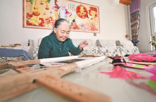 樂都區(qū)蘆花鄉(xiāng)東嶺村易地搬遷戶——72歲王玉英老人俯身案前,銀針牽引著彩線,在綢緞上勾勒出“象背云鼓”的吉祥紋樣。這幅承載著土族文化記憶的刺繡,不僅為老人帶來每年近萬元的收入,更讓傳統(tǒng)技藝成為增收“金鑰匙”。