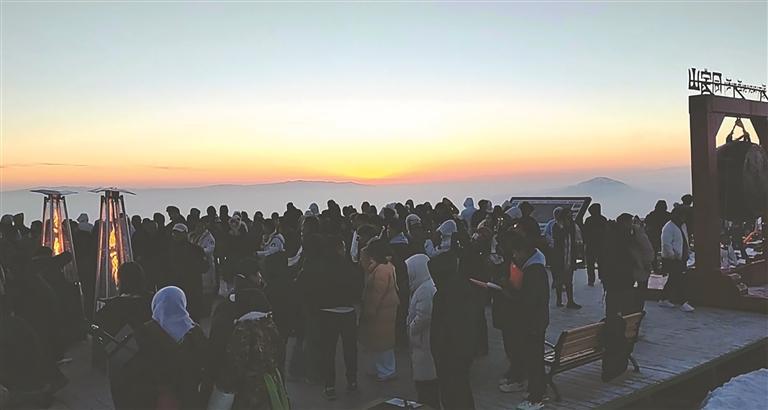 在同寶山頂穿羽絨服看日出、吃火鍋、放煙花,成為年輕人冬日歡度周末的新方式。張進(jìn)娥 攝