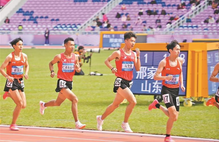 比賽還剩六圈時進入白熱化,青海隊馬文良、云南隊蔣發(fā)坤、遼寧隊于水慶、山東隊唐浩然展開獎牌爭奪戰(zhàn)。此時,全場觀眾的熱情進一步被點燃,看臺上各隊的助威聲此起彼伏。運動員們盡管體能已經(jīng)接近極限,但在一聲聲“加油”的感染下,大家都咬緊牙關(guān)奮力向前。