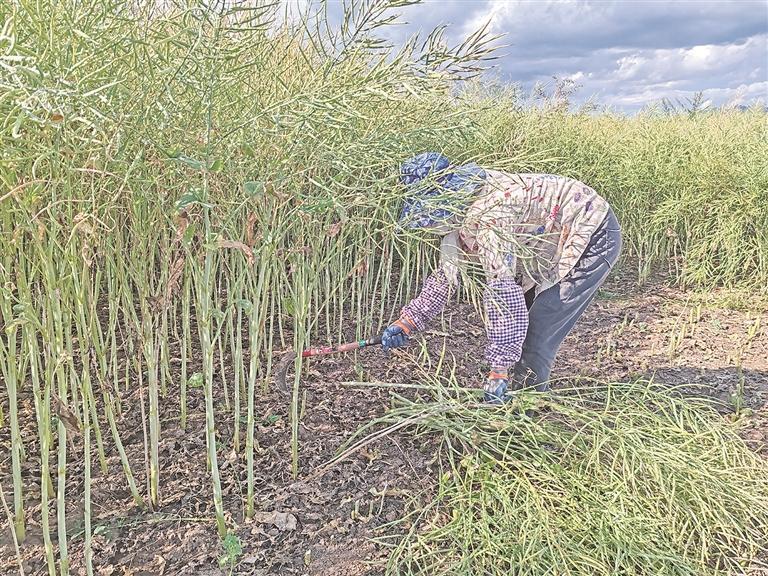 8月,位于互助縣的雜交油菜種植基地內(nèi),農(nóng)戶采收油菜。