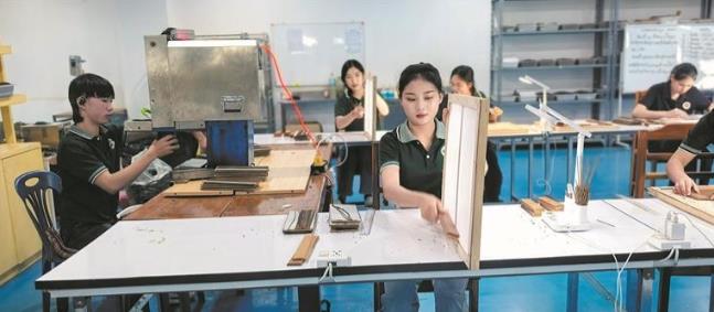 SK沉香生物科技有限公司內(nèi),當(dāng)?shù)貑T工正在制作沉香。賈泓 張得俊 譚梅 王杜鵑 攝