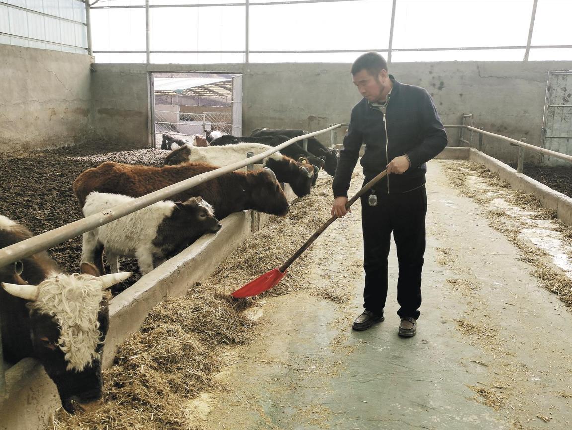 2015年,他牽頭成立大通伊綠種養(yǎng)殖專業(yè)合作社,流轉(zhuǎn)附近村莊約66.67公頃土地,在泉灣村后山搭起兩棟畜棚,將規(guī)模擴(kuò)大到60頭牛。“沒有雇一個(gè)人,從配飼料到清牛糞,從播種到收割,全靠家里人的幾雙手。”