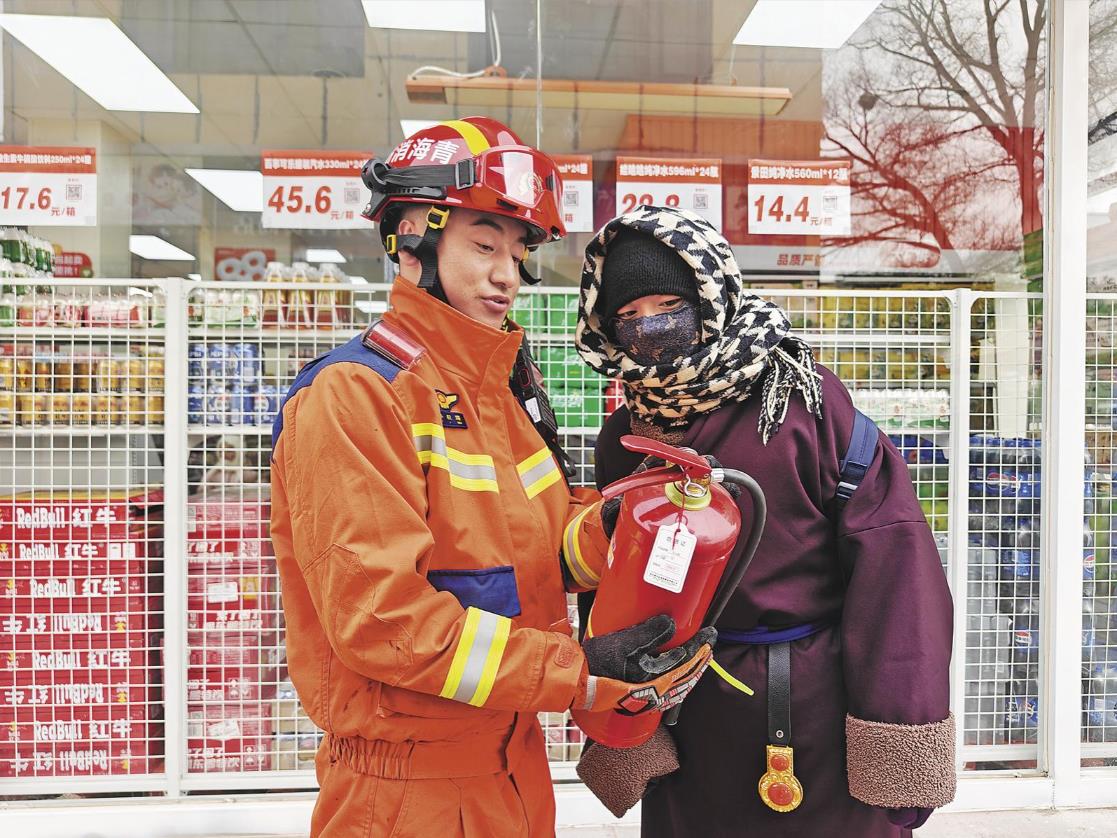 每到重要的節(jié)點(diǎn),過馬營鎮(zhèn)街頭都會(huì)出現(xiàn)一支特殊的宣傳小分隊(duì)。消防救援站的隊(duì)員們走街串巷,用漢語、藏語雙語講解防火知識(shí)。