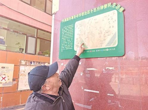 劉力勝指著小區(qū)門口張貼的“15分鐘便民生活圈”導(dǎo)視圖說:“我年紀(jì)大了,好在藥店、農(nóng)貿(mào)市場(chǎng)、超市、醫(yī)院這些基本都在這個(gè)圈子里,應(yīng)有盡有,不用跑遠(yuǎn)路,十分便利。”