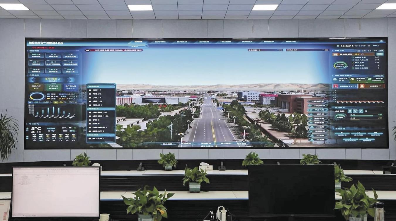 “智慧”大屏呈現(xiàn)城市全景與數(shù)據(jù)運行。茫崖市融媒體中心供圖