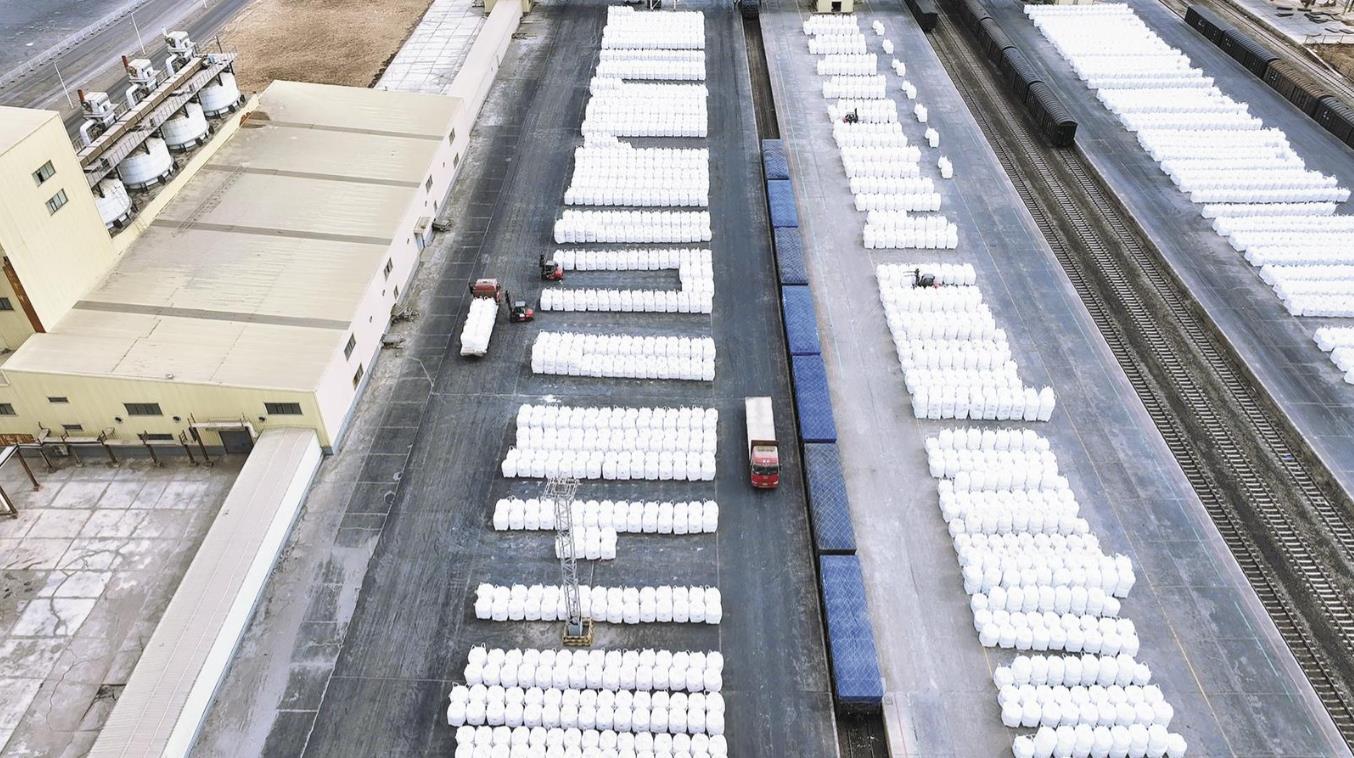 青海鹽湖股份最終產(chǎn)品通過鐵路運(yùn)輸前往下游。張鵬 攝
