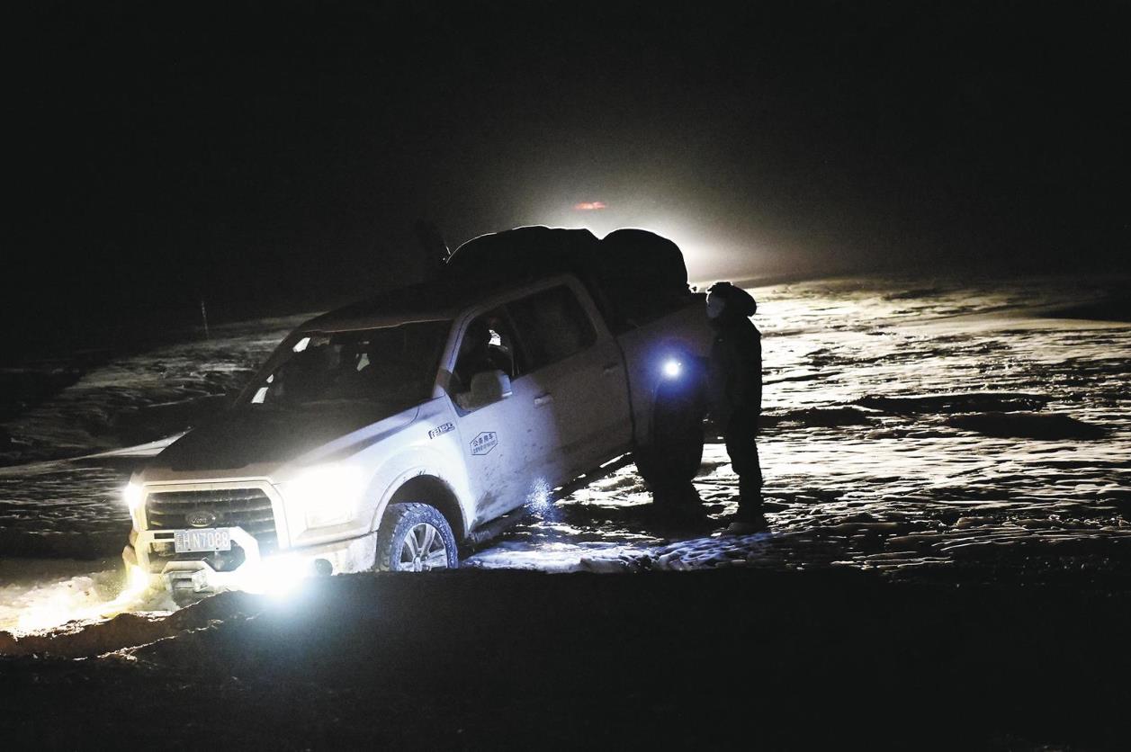 車陷進冰河是常事。有一回,幾輛車在河谷里折騰到半夜,零下三十多攝氏度的寒風中換輪胎,手凍得握不住扳手。第二天天亮才發(fā)現(xiàn),車隊停在一片大湖的淺灘上,背后就是布喀達坂峰,雪山近在咫尺。
