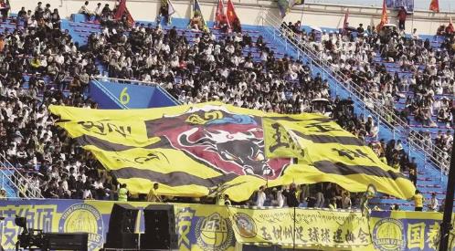 而在看臺(tái)區(qū)的青海玉樹球迷不遑多讓,他們身著民族服飾,接力拉起一面以牦牛圖案為主題的巨型Tifo,隨著喇叭和鼓聲的節(jié)奏,球迷們整齊地拍著手臂,呼喊聲沙啞卻堅(jiān)定。