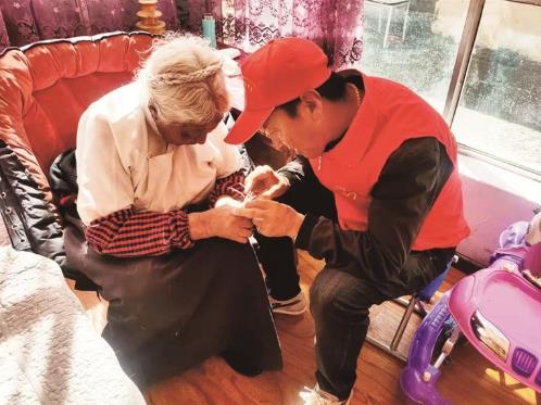 折龍達(dá)社區(qū)志愿服務(wù)隊(duì)貼心照料轄區(qū)老年居民。